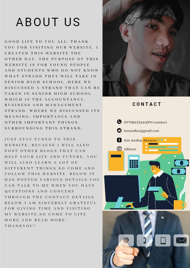 BLOG:Hello everyone! I hope all of you are in good condition right now in particular that global pandemic is still on progress. Here in my blog, I talked about Accountancy, Business and Management Strand which can help young people and students to get a guide on what strand they should take in Senior High School.